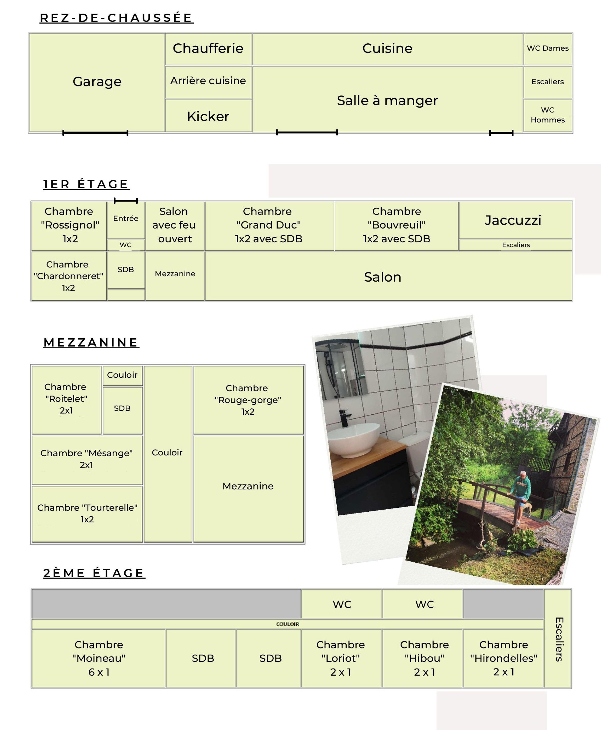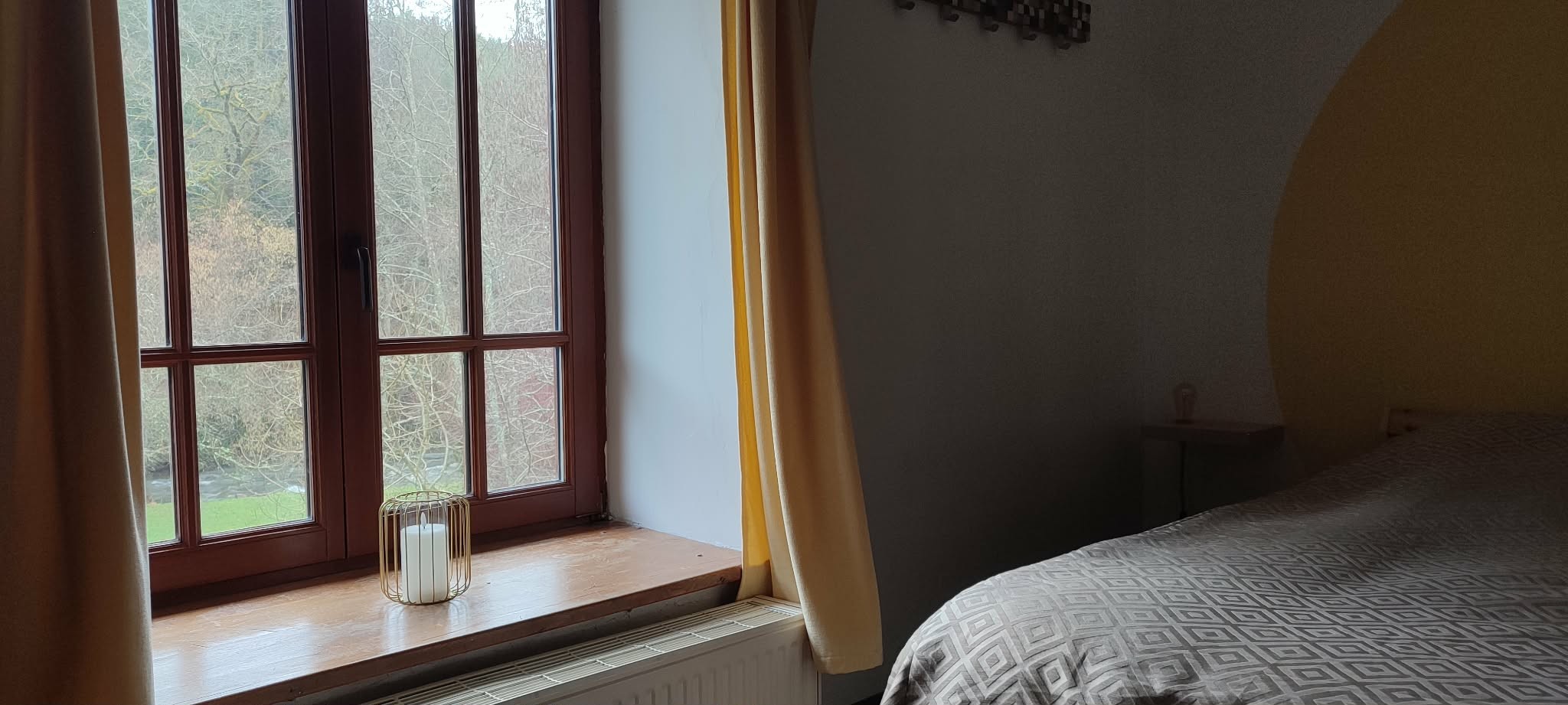 Situé au coeur des Ardennes, près du village de Patignies, le Moulin de la Galette vous ravira de par son charme et sa quiétude. Il se situe dans une clairière à la jonction des villages de Patignies, Malvoisin et Sart-Custinne. Le Moulin est longé par la Houille (la rivière) et traversé par le Fort Dieu (le ruisseau). De belles promenades à pied ou à vélo sont possibles au départ du gîte. Vous pourrez y découvrir la beauté de nos Ardennes. Sur place, vous avez la possibilité de vous amuser autour du kicker ou du terrain de pétanque, si le temps le permet de faire "trempette" dans la Houille mais également de profiter tout simplement du calme de l'endroit. Le moulin possède également une roue qui lui permet de produire, en partie, son énergie. Vous aurez compris que tous les éléments sont réunis pour vous faire passer un agréable séjour.